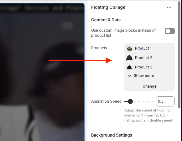 - Add products from your store or manually upload images to the collage