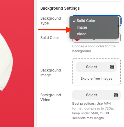 Choose between color, gradient , image, video, or transparent backgrounds